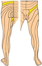 | Du markerade beteckningen som motsvarar område L1. Du kan ha ett tryck på nervroten som löper ut mellan ländryggradskotorna L1 och L2, åt vänster. En röd boll och en svart pil markera det troliga området där nervroten är utsatt för tryck, eller annan påverkan. | |||||||||||