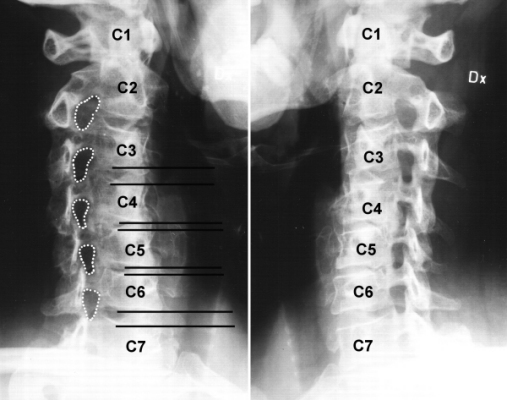ni att mellanrummen C3-C4 & C6-C7 är bredare än mellanrummen